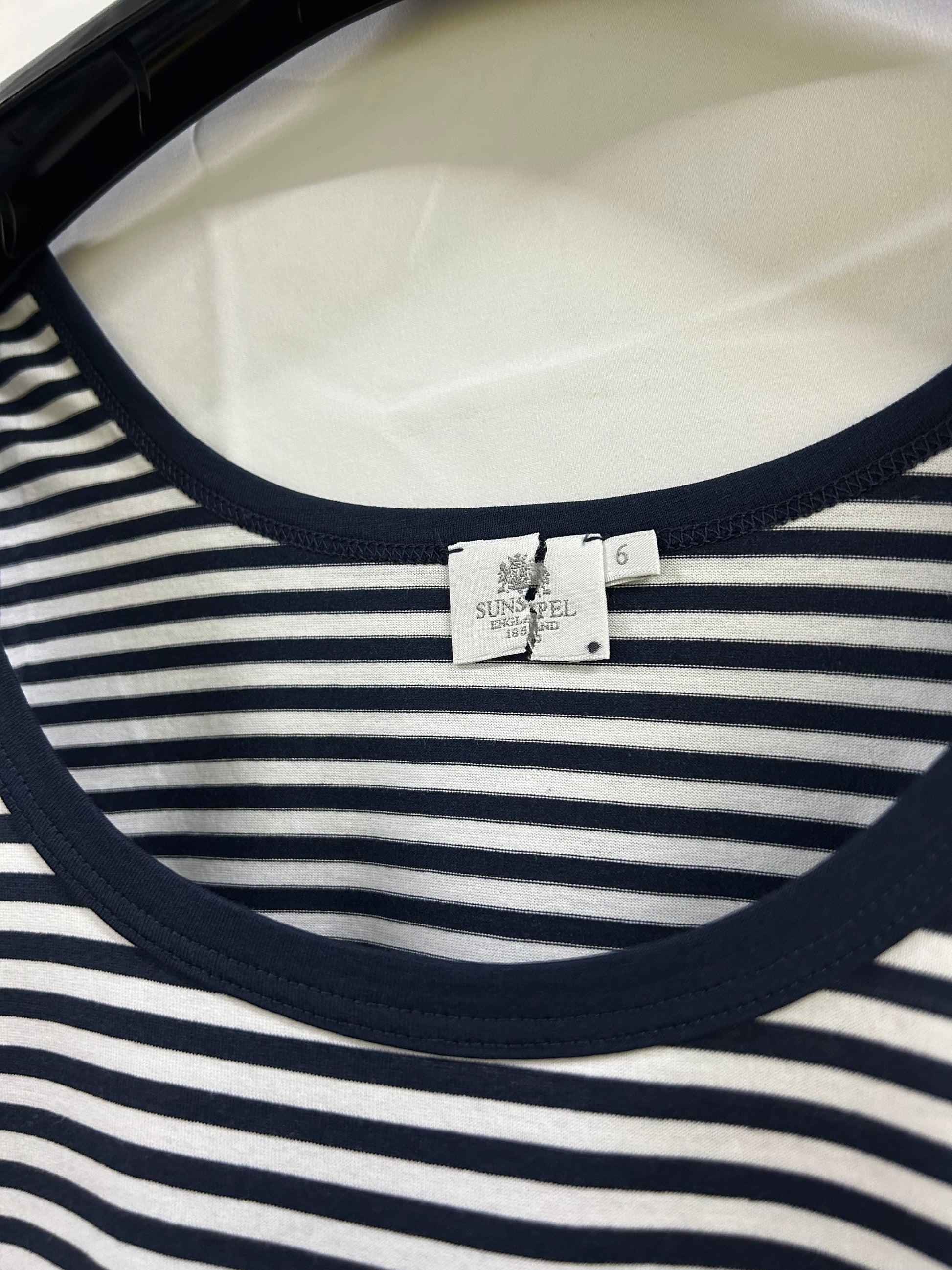 Increase quantity for Ladies Size 6 Blue and White Sunspel Vest